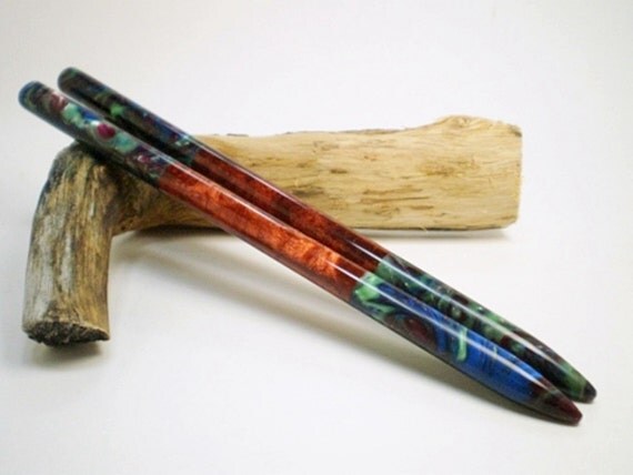 2 Toned Acrylic Hair Sticks - Wizards Mist and Copper No 333 by OutNumberedNovelties